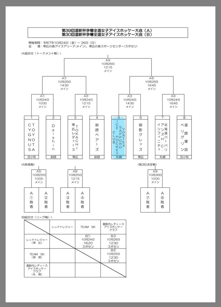 第39回道新杯争奪全道女子アイスホッケー大会が、10月24日(金)〜26日(日)で帯広市にて開催されます。