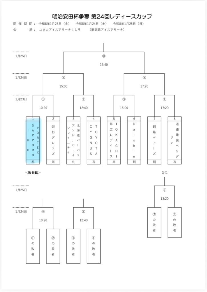 明治安田杯争奪 第24回レディースカップが1月23日(金)〜25日(日)で釧路市にて開催されます。